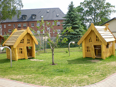 Außengelände Unser Außengelände ist in Bewegungs- und Ruhezonen aufgeteilt. Bei der Gestaltung des Spielplatzes wurden alle alterspezifischen Besonderheiten der Kinder beachtet. So unterteilt er sich in Krippenbereich und Kindergartenbereich.
